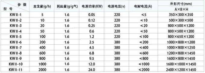 1、设备组成:KW型系列高效混合消毒剂发生器由电解槽、直流电源、盐溶解槽厦配套管道、阀门、仪表等组成。