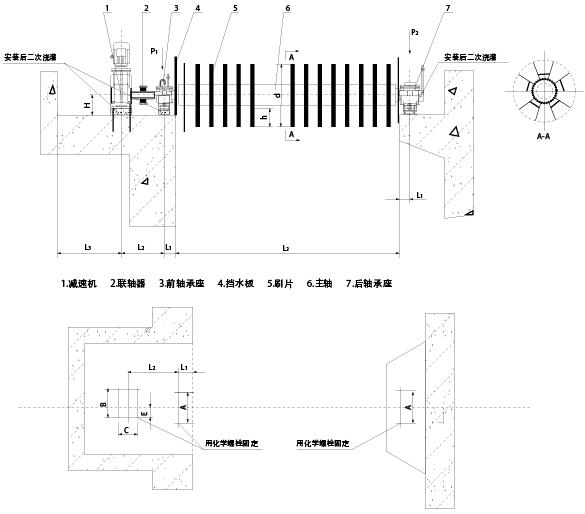 4、尾部采用调心轴承及游动支座,可以克服安装误差,自动调心;同时,能补偿转刷轴困温差引起的伸缩,保证正常运行。