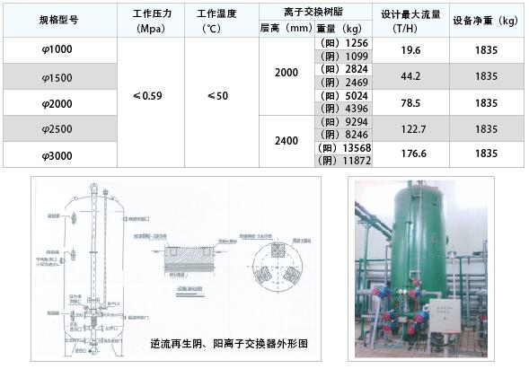 阴、阳离子交换器用于天然水,如河水、湖水、深井水的高度纯化设备,在这些类型的水中含有大量的钙、镁、钠、盐类,含量在500毫克/升以下者,通过阴、阳离子交换的纯化,其含量可降低至5—10毫克/升以下,亦即相当于水的导电度为10微姆/公分左右,可以作为无线电、医药、造纸、化工、原子能等工业用水;如果要求更高的纯度,可以设置第一级或再通过阴阳混合离子交换器进一步达到纯化。