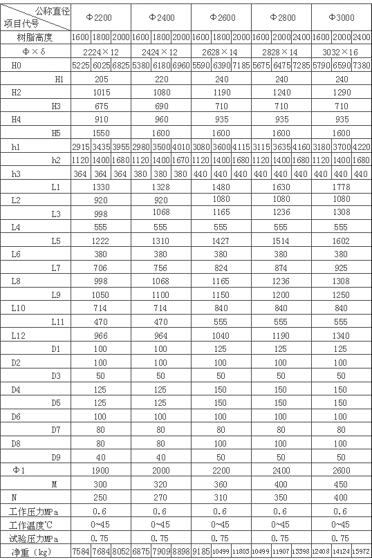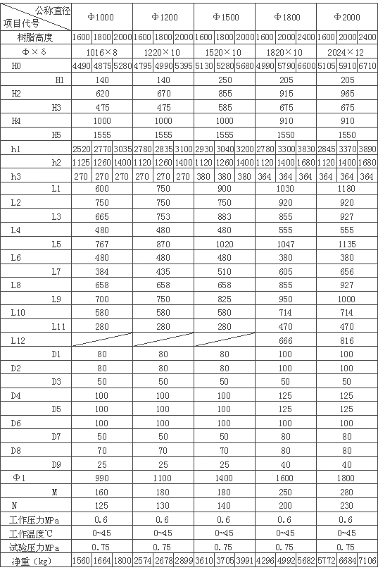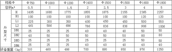 2、SXG型树脂清洗罐规格参数表1