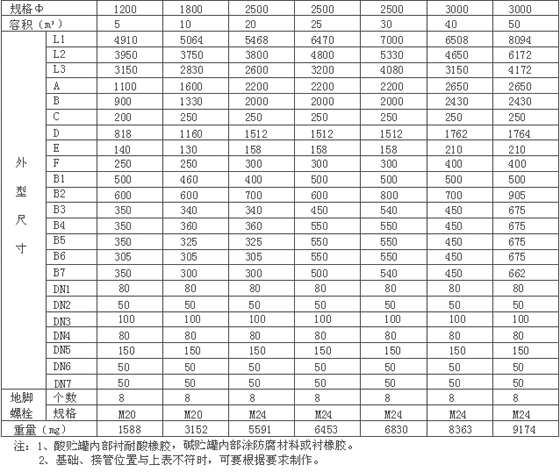 酸碱贮罐规格参数表